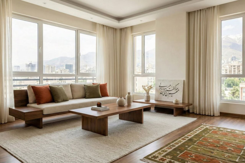 در خانههای ایرانی، «رنگ سال 2026» باعث میشود فرش شنکرم، موکتهای خاکی، پارکت گردویی و پردههای مینیمال، در نوری نرم و یکدست کنار هم دیده شوند. همین ویژگی باعث میشود Cloud Dancer با ترکیبهایی چون چوب گردو، زیتونی، طوسی گرم، شنکرم، بژ، کاپوچینو و نارنجی سوخته پالتهایی آرام، مدرن و کاملاً کاربردی برای فضاهای تهرانی خلق کند. ترکیب سفید ابری + چوب گردو + زیتونی فضایی گرم و مدرن ایرانی میسازد؛ و ترکیب سفید ابری + طوسی گرم + شنکرم خانههای کوچک تهران را روشنتر و وسیعتر نشان میدهد.